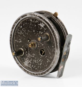 W Martin James 3 ½” centrepin alloy trotting reel with on/off check rim lever, smooth foot, surface wear apparent, runs smooth and spins well otherwise