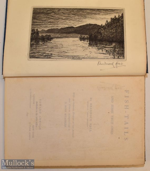 Bradnock, Hall – “Fish-Tails and Some True Ones” 1897 1st edition, with signed original etching plus 12 illustrations, in blue and silver cloth binding