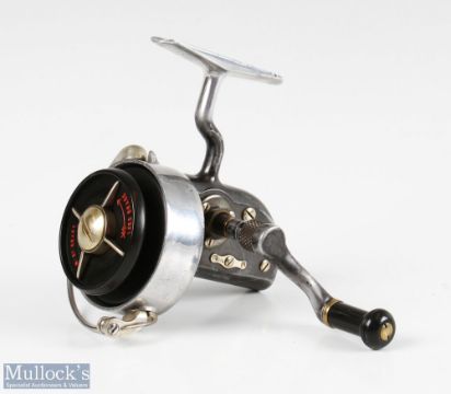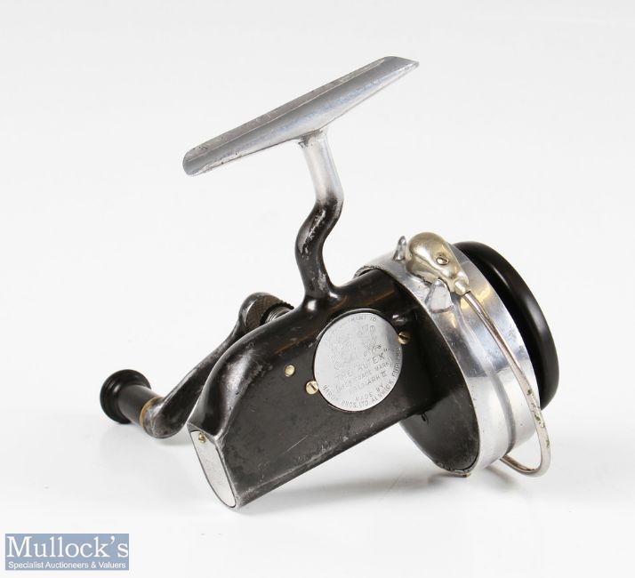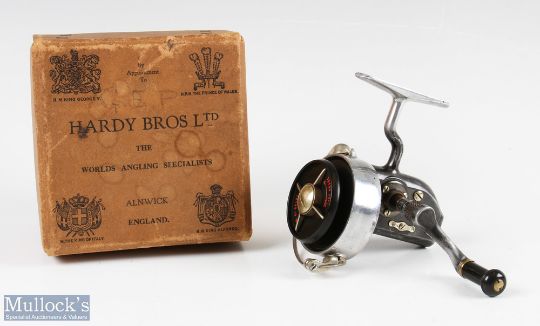 Hardy Bros England Altex No1 Mk II fixed spool reel folding handle, Brit Pat end plate, full bail arm, runs smooth, with Hardy card box