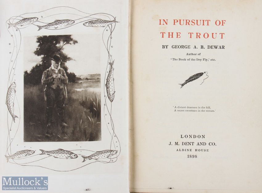 Dewar, George A. B. – “In Pursuit of the Trout” 1898 1st edition, published by J. M. Dent & Co, in original green cloth binding