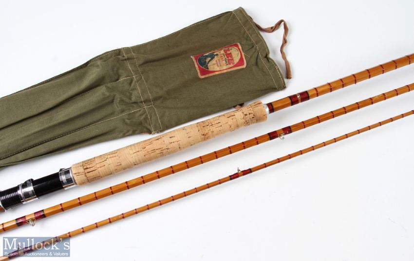 Rare M Lee & Son, Pershore, split cane salmon spinning rod 13ft 6ins 3pc agate lined butt and tip rings, light use, in MCB