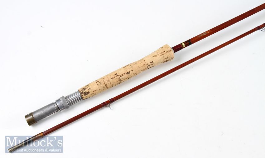 Sharpe’s of Aberdeen ‘Scottie’ 9.5ft impregnated cane fly rod line 7-8, numbers 3.11.41 are stamped on reel seat