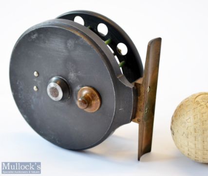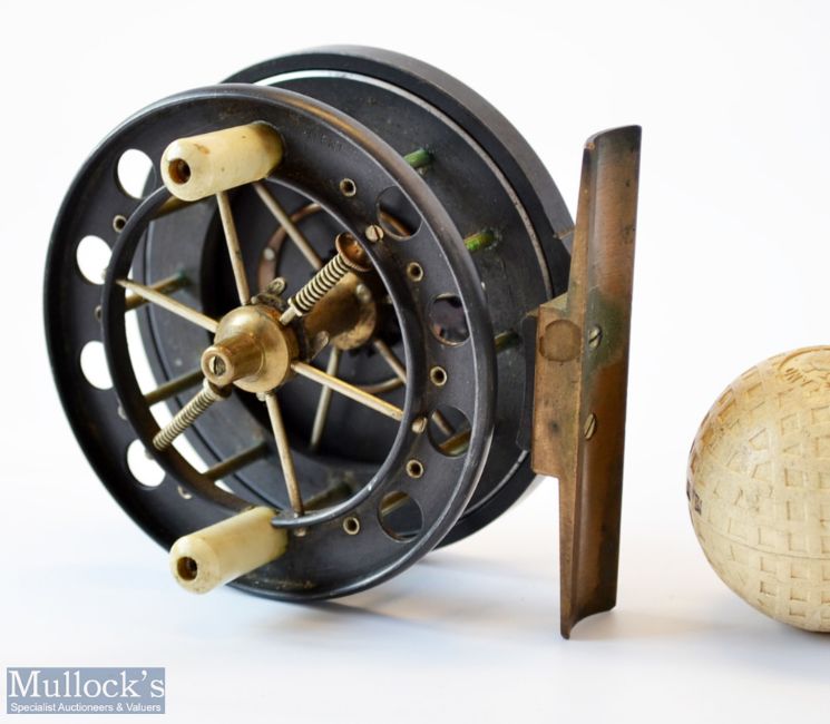 Rare Allcocks Aerial 3” black lead alloy centre pin reel c1915/16 – stamped Patent to front drum flange – 6 spoke with tension regulator, 8 holes to front flange, 17/16” wide drum - on/off check and spins freely. Note See Bob Singleton Book on Aerials p.54