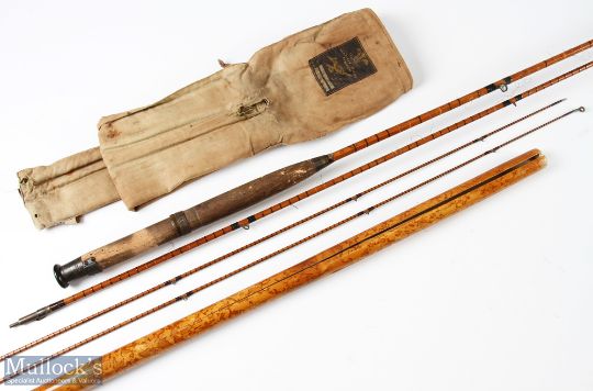 Hardy Bros ‘The Houghton’ 9ft split cane rod 3pc plus spare tip (missing tip ring), with tip tube, cracked and some whipping required in used mcb