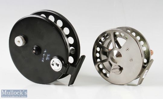 Fine Marco Corfesi 4 ¼” centrepin trotting reel twin handled, on/off check, spins forever, together with a Lewtham Products 5 ½” Leeds Reel in black finish, appears in good condition overall (2)