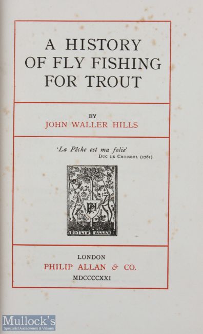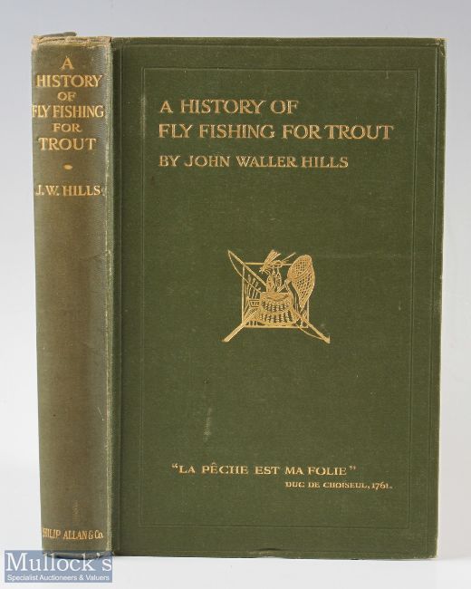 Hills, John Waller – “A History of Fly Fishing for Trout” 1921 1st edition, published by Philip Allan & Co, London, in original green cloth binding
