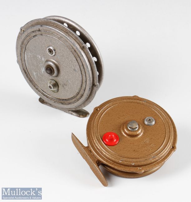Grice & Young 4 ¼” D’Or centrepin reel with line guide, pillar drum core, spins very well, plus a Grice & Young Gypsy d’Largent 3 ½” centrepin reel retaining most of original finish, spins very well, quick release latch requires attention (2)