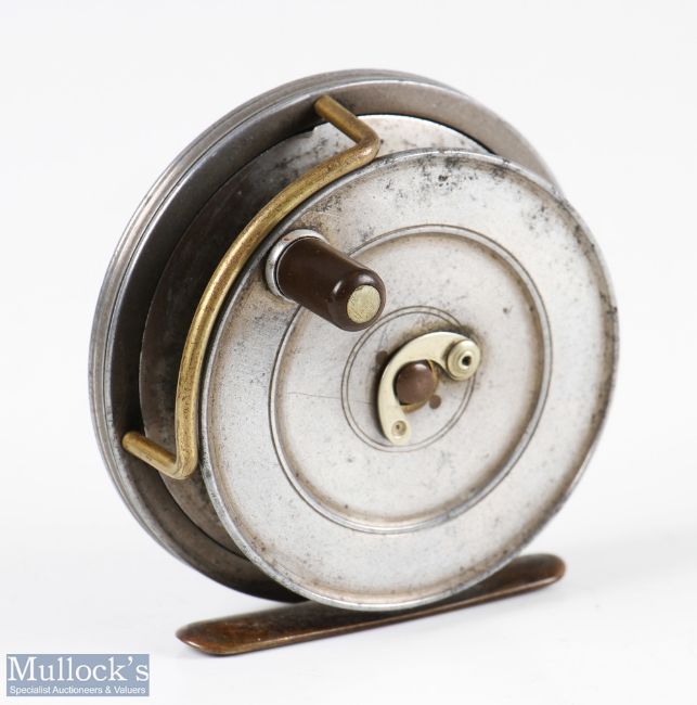 Hardy Bros England Sunbeam 3 ¼” Dup Mk II alloy fly reel with smooth brass foot, horse shoe latch, Bickerdyke line guide, constant check, runs smooth, with usual light surface wear