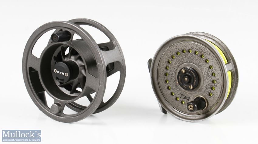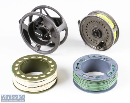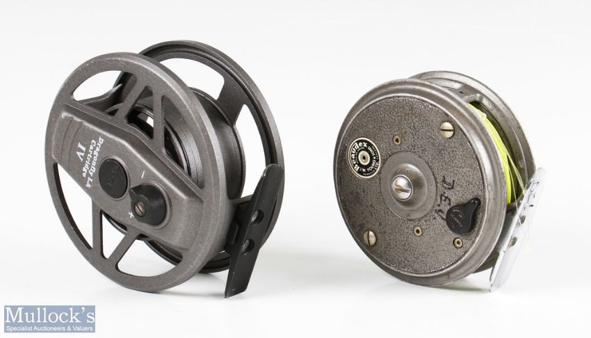 Dragonfly LA Cartridge IV fly reel with backplate tensioner, quick release drum, spare cartridge cassette, within BFR zip case, together with a JW Young 3 ½” Beaudex fly reel with zip case (4)