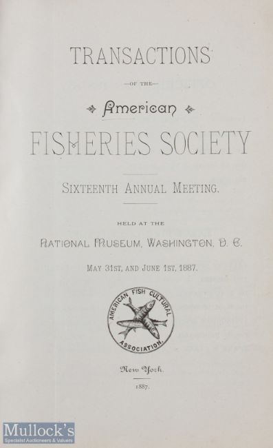 Transactions of the American Fisheries Society 16th annual meeting, held at the National Museum, Washington DC, May 31st and June 1st 1887, published by American Fish Cultural Association, New York, 1887, 72 pages with original covers