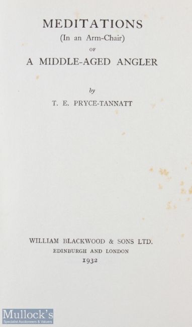 Pryce-Tannatt, T. E. – “Meditations (In an Arm-Chair) of a Middle-Aged Angler” 1932 1st edition, published by William Blackwood & Sons, Edinburgh and London, in original green cloth binding