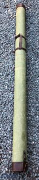 Canvas and leather rod carrying tube 60ins x 3 1/2ins, adjustable leather handle, leather cap and base, cap strap broken
