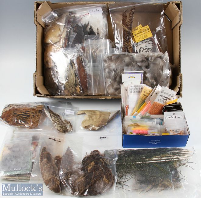 Collection of Fly Tying Feathers and Materials – incl mixed capes and feathers, pheasant, mallard, peacock, woodcock, grouse and others with 50 packs of fly tying materials (Box)
