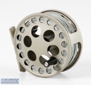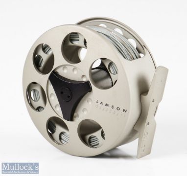 Fine Lamson LS 1:5 Litespeed 3 ¼” fly reel in smoke matt finish, rear drag adjuster, loaded with line, appears unused with neoprene case