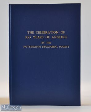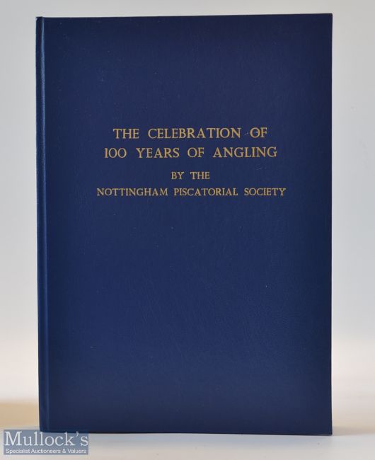 Fishing book produced by The Nottingham Piscatorial Society titled “The Celebration of 100 Years of Angling” 1st edition 1992 in the original blue faux leather and gilt boards including illustrations, newspaper articles et al appears unread