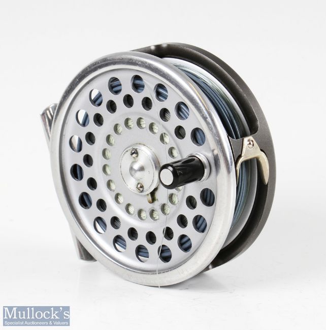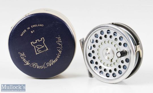 Hardy Bros England Marquis #6 alloy trout fly reel with alloy smooth foot, line guide, loaded with line, very light signs of use, in very good condition, with maker’s zip case