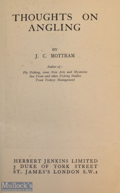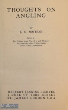 Mottram, J. C. – “Thoughts on Angling” 1st edition, published by Herbert Jenkins, London, illustrated, bound in black cloth with leather spine tooled in gilt