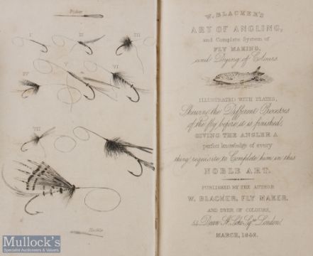 Blacker, William – “Blacker’s Art of Angling and Complete System of Fly Making and Dying of Colours” 1842 1st edition with Blacker signature to page 38, 38 pages with 2 uncoloured plates, bound in Moroccan leather highly decorated boards with gilt title to spine, inner from board having Dermot Earl of Mayo 1888, housed in a modern custom made box with gilt title to spine. Very light wear to exterior with internal pages clean throughout, a good example of a scarce book