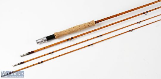 Hardy ‘The De-Luxe’ split cane fly rod 9ft 3pc plus spare tip, line 6 with Acorns and MCB