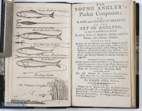 Cole, Ralph – “The Young Angler’s Pocket Companion” or a new and complete treatise on the art of angling, 1795 1st edition published by R Bassam, engraved frontis plate of hooks and bait, lack 2 plates, bound in 19th Century ¾ dark green Moroccan leather