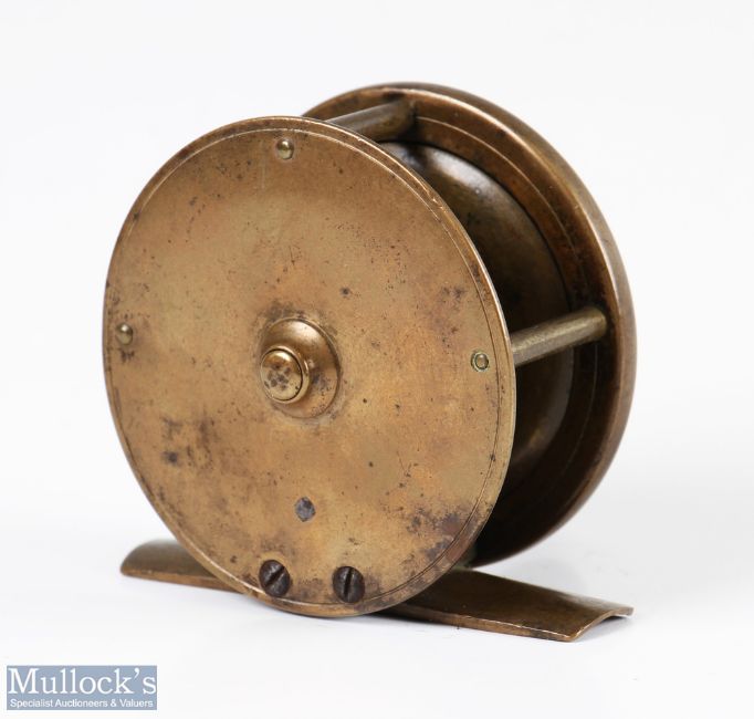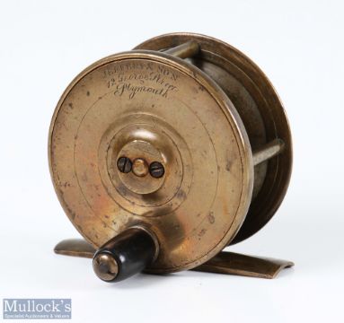 Jeffrey & Son Maker Plymouth 2 ½” copper brass fly reel with good constant check, slight dish to face, usual light surface wear, G overall