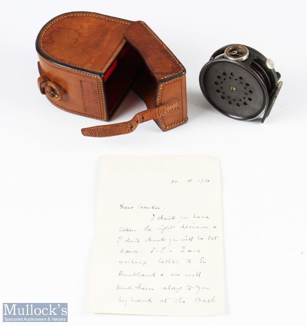 Of Historical Importance – Sir Eric Norman Spencer Crankshaw (1885-1966) Right hand man to Sir Winston Churchill – Hardy Bros England 3 1/8” Perfect Dup Mk II alloy fly reel with agate line guide, ribbed brass foot, rim tensioner, with line, comes with Hardy Bros leather D block reel case, with a hand written note and another letter to Crankshaw "Crankie" from Frances Stevenson (Lloyd George's mistress) referring to Sir Auckland Geddes and written on 10 Downing Street embossed note-paper.