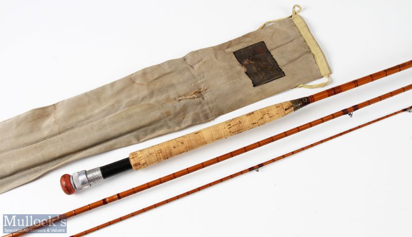 Robertson ‘The Studley’ split cane fly rod 10ft 6ins 3pc agate lined butt and tip rings, missing on ring to middle section, MCB has mouse holes