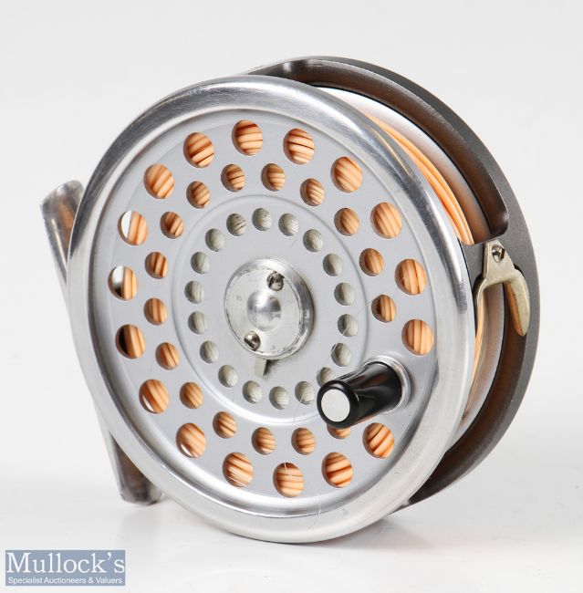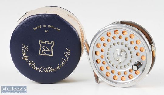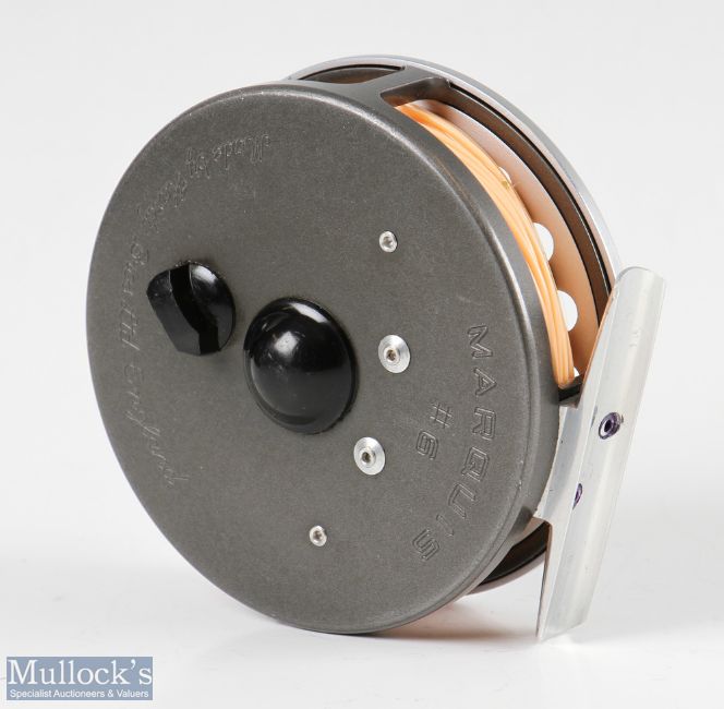 Hardy Bros England Marquis #6 alloy trout fly reel with alloy smooth foot, line guide, loaded with line, very light signs of use, in very good condition, with maker’s zip case