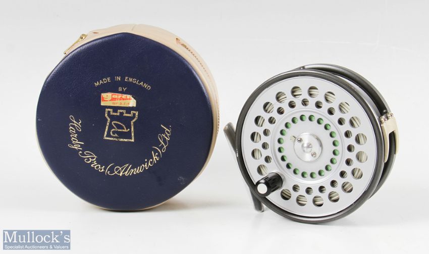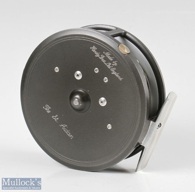 Hardy Bros England St Aidan 3 ¾” alloy fly reel with u line guide, rim tensioner, alloy smooth foot, loaded with line, in very good, clean condition, with maker’s zip case