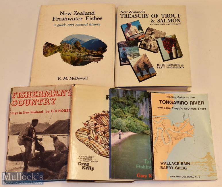 Selection of New Zealand Fishing related books and guides titles include New Zealand Freshwater Fishes, New Zealand’s Treasury of Trout & Salmon an Angling Anthology, Fisherman’s Country, The Flies in my Hat all HB with DJs, plus A Taupo Fishing Guide and Fishing Guide to the Tongariro River SBs (6)