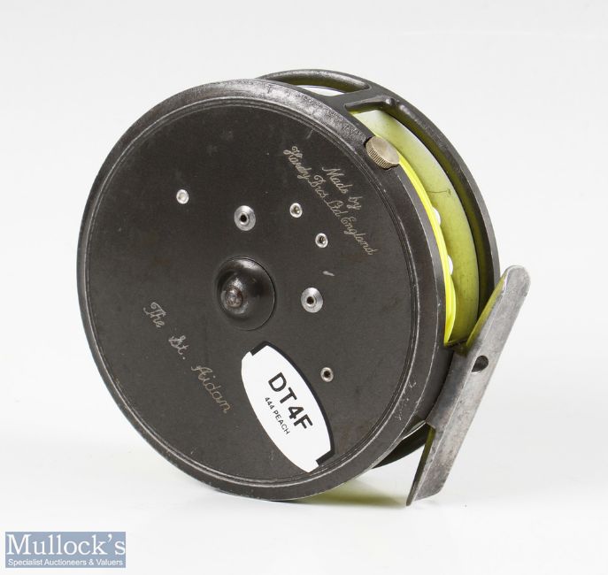 Hardy Bros England St Aidan 3 ¾” alloy fly reel with u line guide, smooth alloy foot, rim tensioner, surface wear, runs smooth with maker’s zip case