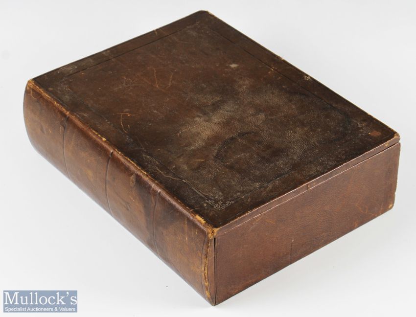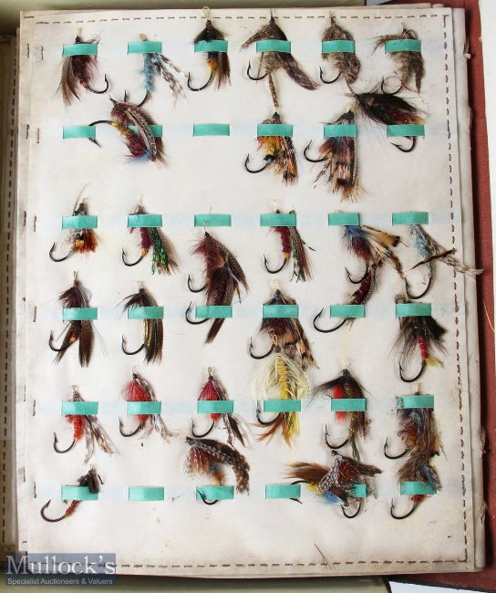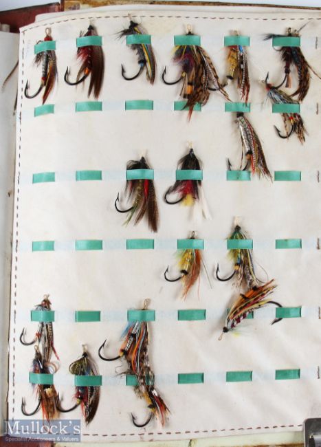 Large Collection of Gut Eye Salmon and Trout Flies in Leather Bound Book Type Case in various patterns with sizes 1” to 3”, approx. 150 gut eye flies with a small group of other flies, all housed on vellum sheets in a leather bound book style case, inside lid wrote in pencil “Fishing Tackle belonging to Spencer Kay-Smith”, case size overall 12” x 9.5” x 4”