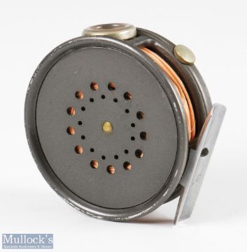 Hardy Bros England Perfect 3 3/8” alloy trout fly reel with agate line guide, rim tensioner, smooth alloy foot, loaded with line, very light surface wear, good overall, runs smooth