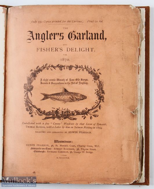 Pearson, Edwin – “The Anglers Garland, and Fishers Delight for 1870 and 1871” with woodcut illustrations by Thomas Bewick, limited to 350 copies, with original printed paper covers to both books, both books bound together with ¼ calf binding