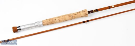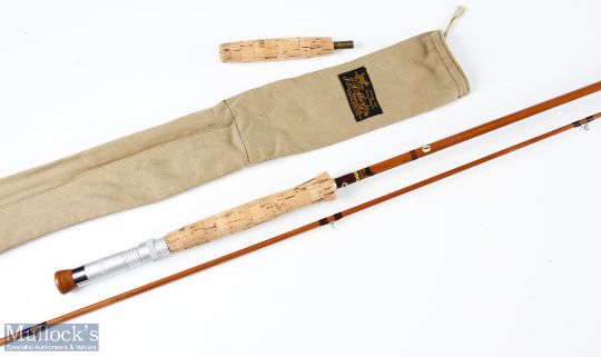 J S Sharpe of Aberdeen for Farlows, Scottie impregnated 2pc split cane fly rod 9ft 6ins line 7 with butt extension, light use in MCB