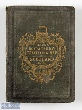 Black’s Road & Railway Travelling Map Of Scotland Circa late 1850s Map - fine hand coloured fold out cloth backed in panels Map of Scotland. The railway system reached just as far Aberdeen. Folds out to 24½” x 33½”.