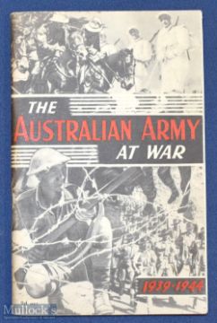 The Australian Army At War 1944 Publication. A 72 page publication with 16 full page photographs and detailing text regarding the Australian Army in Europe, North Africa and the Far East. In pictorial card cover, size 5¼” x 8¼”.
