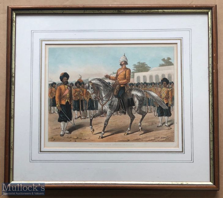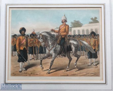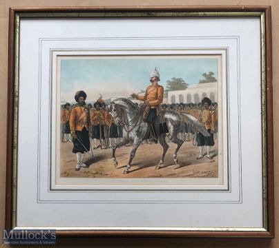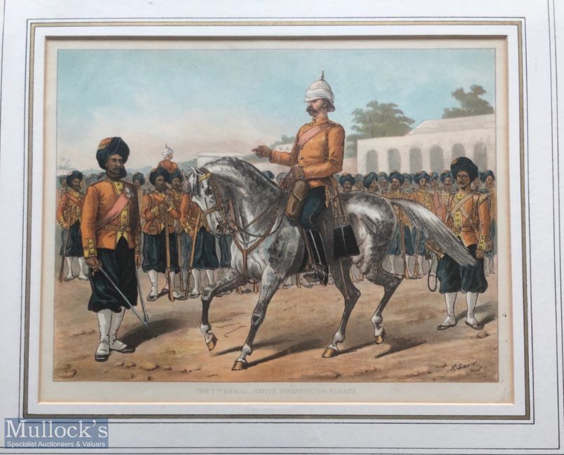 India - Original colour lithograph Sikhs of the 7th Bengal infantry on parade c1900s by R Simkin. In original frame. Dimensions 42 x 36cm