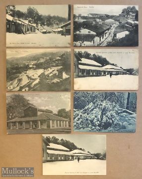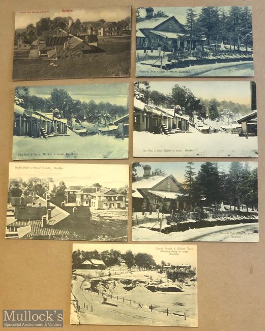 Collection of (14) printed postcards of Ranikhet, India c1900s. Set includes views of the mall and market, married quarters, transport line, regimental bazaar, barracks, post office plus others.
