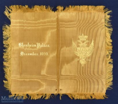Blenheim Palace November 1893 Music Programme a most beautiful extensive 10 pieces of music Programme with International Orchestra. Gold printing on finest quality silk backed card with gold printing folds out to size 6¼” x 5¼”