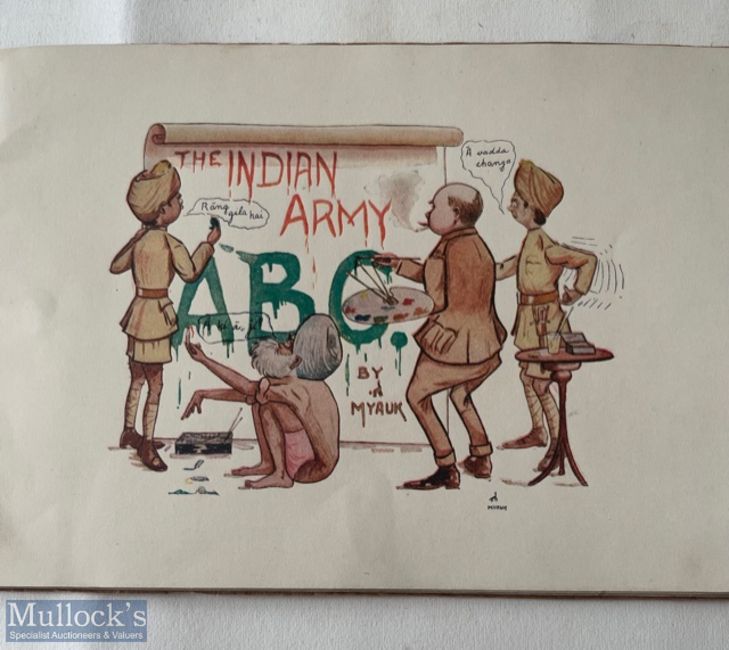 WWI India - The Indian Army A.B.C. published by Thacker Spink & Co Calcutta. Numbers images of Indian soldiers’ daily life, including wrestling, Sikhs playing football and Hockey plus many more c1900s