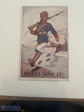 India – c1900s Sikh Soldier Comic Colour Postcard India’s done it showing a Sikh solider on the March.
