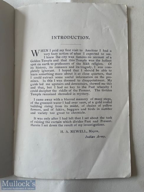 India Guide - Amritsar the city of the golden temple my Major H.A. Newell of the Indian army - a rare guide to places of interest with full description and history. 15 pages