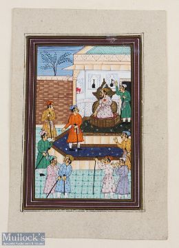Indian Painting of Mughal Court Scene The Mughal Durbar, colourfully presented with mount ready to frame, measures 18x28cm approx.