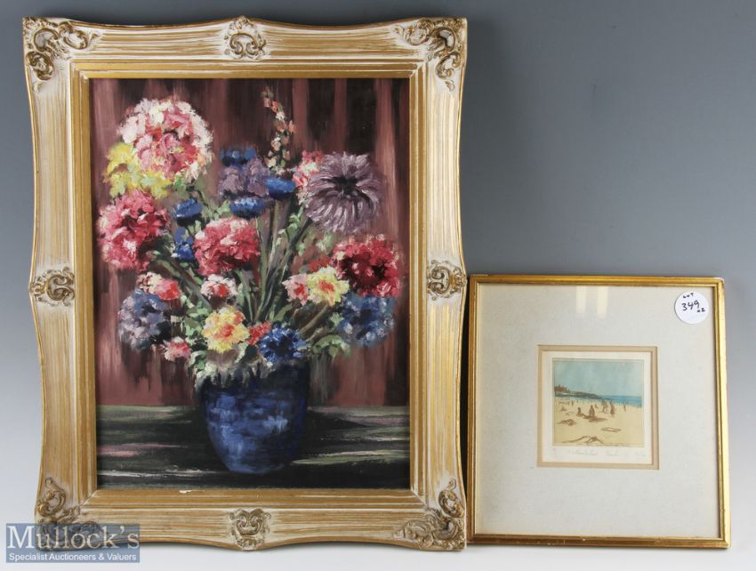 K. Stubbs ‘Northumberland Beach’ Signed Colour Print Limited Edition 3/6 framed measures 29x29cm approx., together with a Floral Watercolour Painting in decorative frame measures 46x56cm approx. (2)