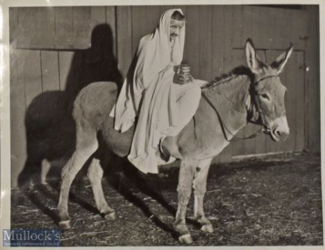 Ruth Woolsey as MK Gandhi riding a Donkey Press Photograph with notes and stamp to reverse, date 8-11-34, measures 23x18cm
