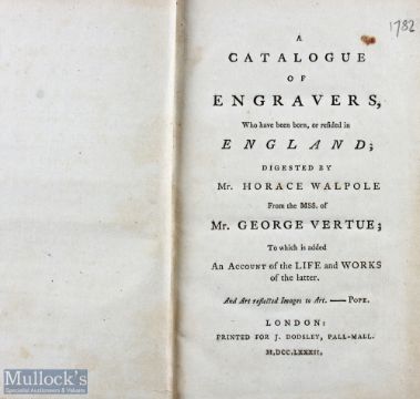 Catalogue of Engravers, by Mr George Vertue 1782 - an extensive 304 page book giving a detailed account of many engravers and their noted works. Also with cross referencing index. Of interest has fine Book Plate of Captain Locker of the Royal Navy (here illustrated. In old leather binding and restored spine, size 5” x 7½”