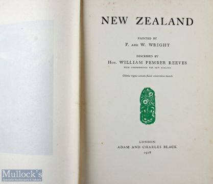 New Zealand - Painted by F & W. Wright Described by Hon. W.P. Reeve High Commissioner for New Zealand 1908 Book a 248 page book with 75 beautiful multi-coloured plates taken from fine artistic water coloured paintings. Plus fold out Map. In cloth board covers with fine graphic tooled front cover, 6½” x 9”.