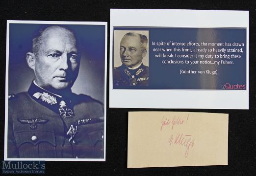 WWII – Autograph - Gunther von Kluge (1882-1944) Signed Cutting and Print a German field marshal who was awarded the Knights Cross of the Iron Cross (2)