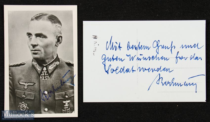 WWII – Autograph - Carl Rodenburg (1894-1992) Signed Photocard inscribed to the reverse with signature in blue ink to front. A German general who commanded the 76 Infanterie Division and was recipient of the Knight’s cross of the Iron Cross with oak leaves.